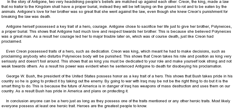 She claims in spite of Creons declaring her a criminal that she is innocent. Go thine own way. Web Although Antigone seems to be the main character of Sophocles story antagonist Creon seems to fit more of the characteristics of a tragic hero.